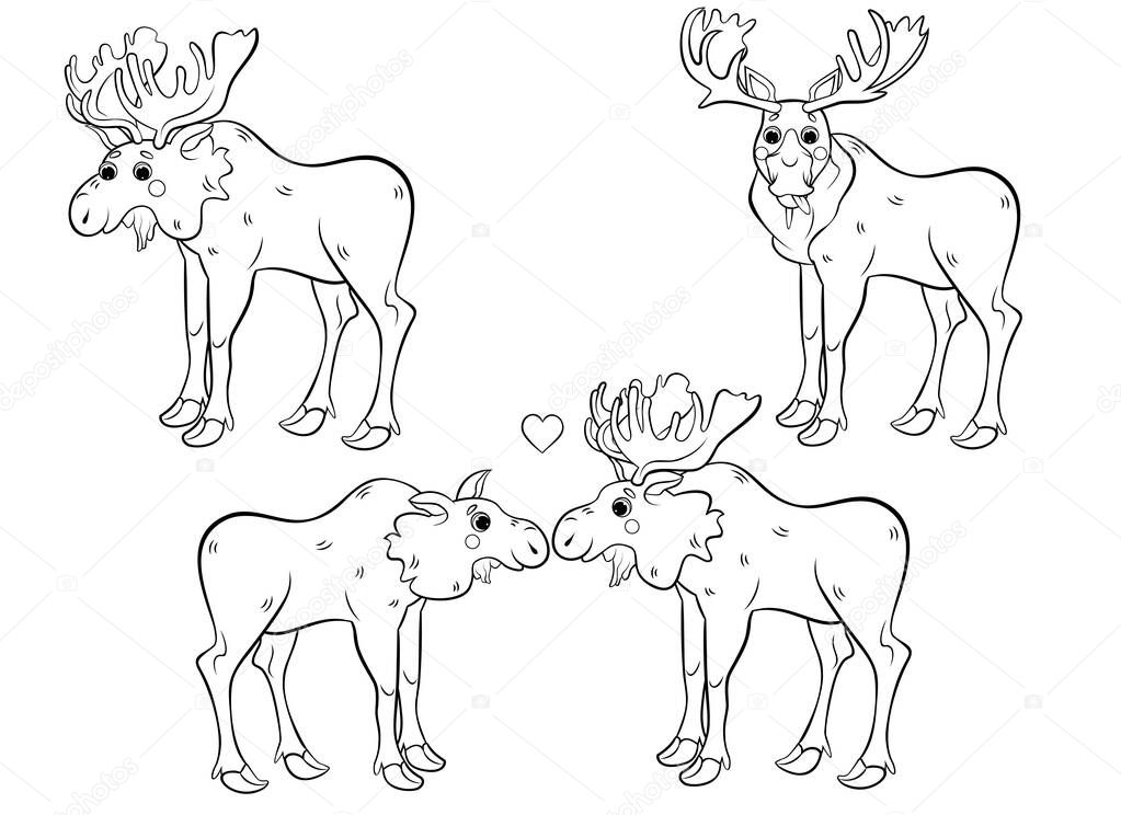 Coloring Page Outline Of Cute Cartoon Wild Moose Moose In Different Postures Coloring Book Of Forest Animals For Kids Isolated Stock Vector Illustration Of Animal Animals 175805014